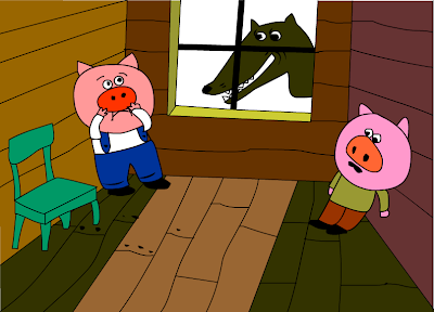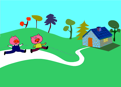 Hai chú heo con lập tức chạy trốn, chúng chạy sang nhà chú heo