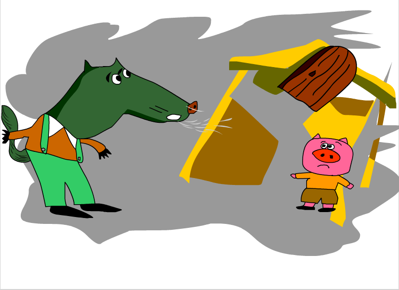 Khi ba chú heo vừa dựng nhà xong, con sói đã ra bìa
